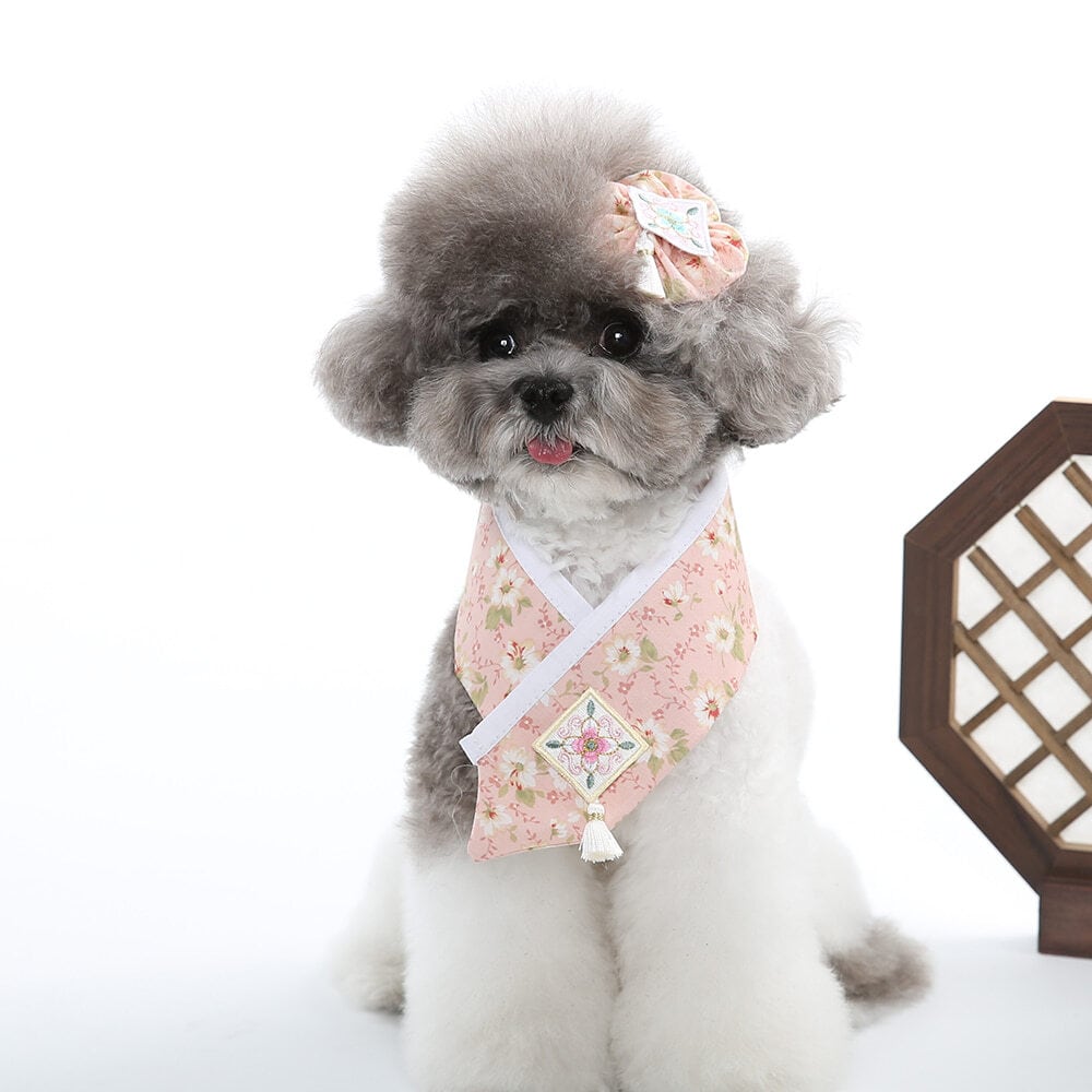[Ritogato] フラワー韓服ケープ(ピンク) 韓国ブランド/ドッグウェア/お散歩/ドッグアクセ/韓国デザイン