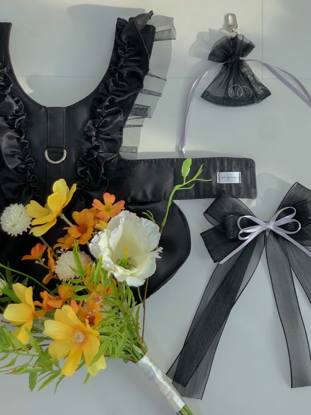 【即納】[OMGM] marry me dress harness - black リングケースセット 韓国ブランド/ドッグウェア/お散歩/ハーネス/犬服/韓国デザイン